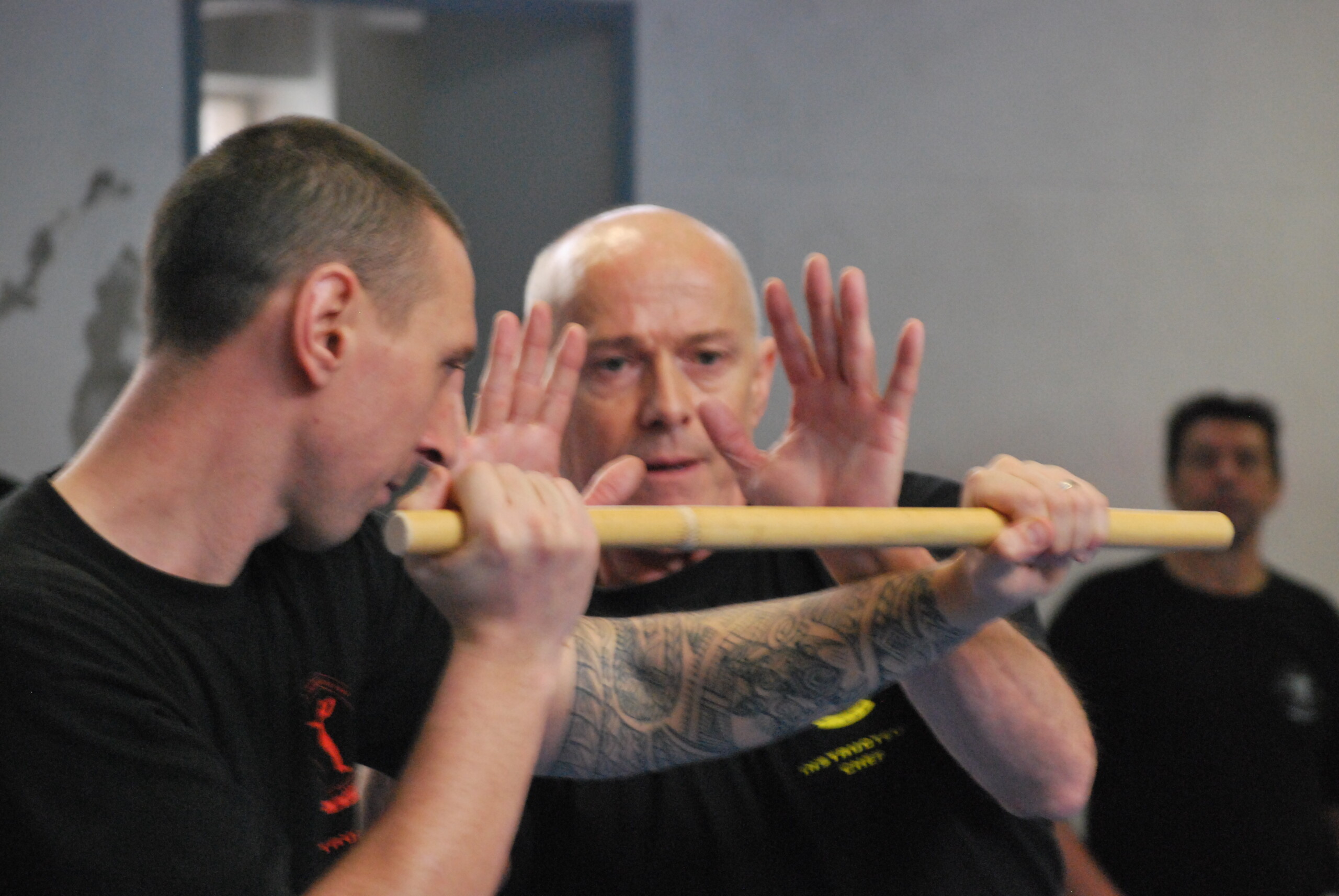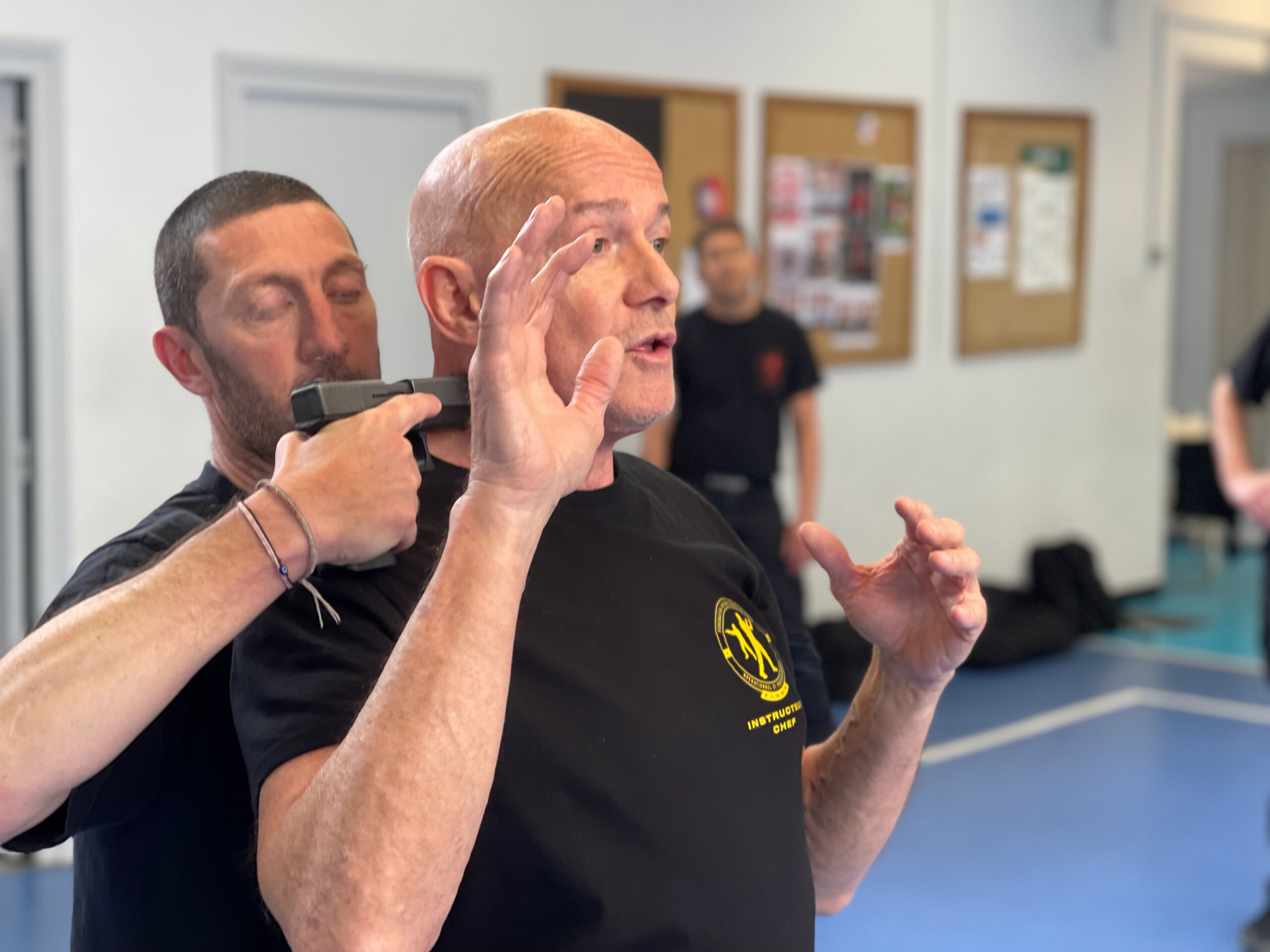 • Le travail des défenses sur couteaux , bâtons, battes de base ball, chaises, bouteilles, etc . sera réalisé dès le niveau débutant en parallèle ou panachage avec les techniques de base pieds /poings.